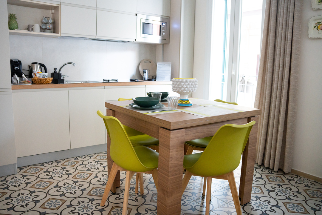 Torre Girasale ti accoglie con tre appartamenti indipendenti di 30 e 40 metri quadri, uno per ogni piano, progettati per offrirti il massimo del comfort e dello stile durante il tuo soggiorno a Margherita di Savoia. Gli appartamenti sono finemente arredati, con attenzione ai dettagli e al design, per creare un ambiente accogliente e raffinato.