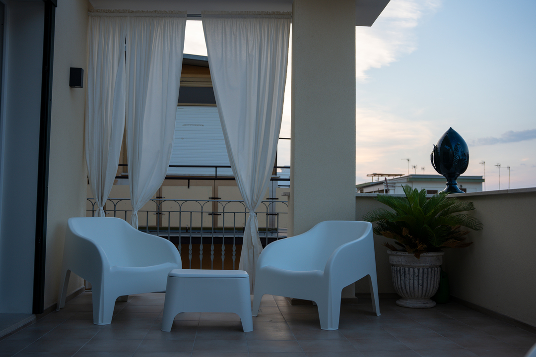 In cima a Torre Girasole, troverai il nostro esclusivo terrazzino prendisole, un’oasi di relax e benessere. Dotato di comode sedute e spazi per rilassarsi, offre una vista panoramica mozzafiato su Margherita di Savoia.